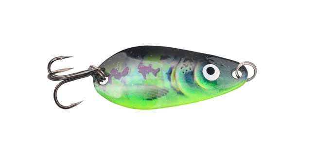 Спеціальна фарба яскраво світиться під впливом ультрафіолету (навіть прихованого сонячного світла в похмурі дні). Це робить блешню максимально помітною на великій глибині та у воді з низькою прозорістю, слугуючи маяком для хижої риби.
