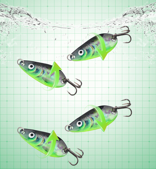 Завдяки тривимірному дизайну поверхні та реалістичному відблиску, блешня створює ефект руху живої здобичі. Вона коливається природно, провокуючи рибу на атаку.